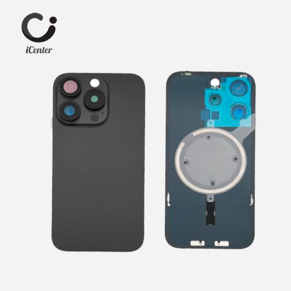 TAPA CRISTAL TRASERO IPHONE 15 PRO MAX NEGRO TITANIO